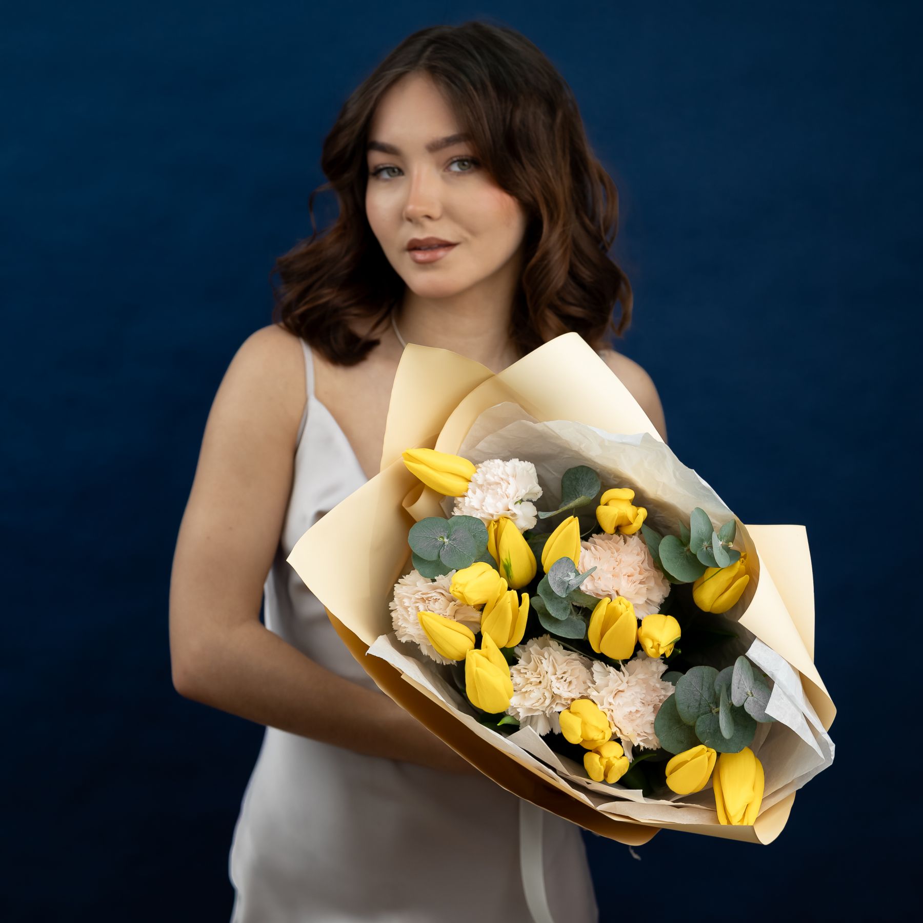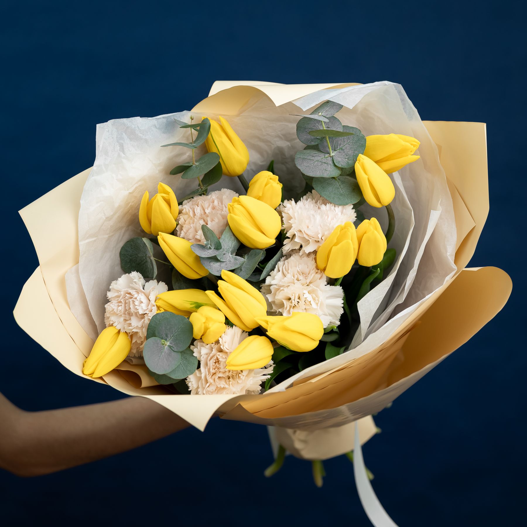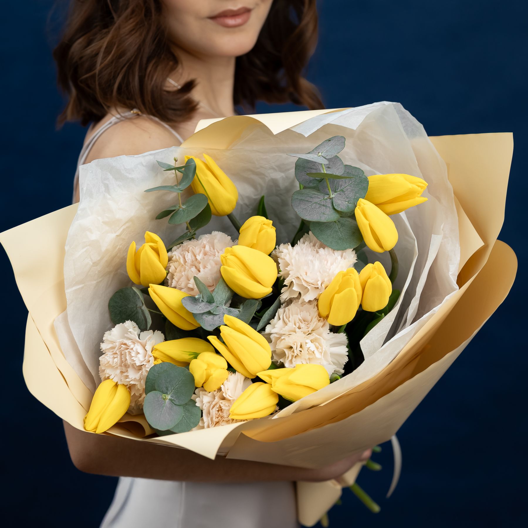 Состав: тюльпан- 15 шт диантус- 5 шт эвкалипт упаковка-1шт