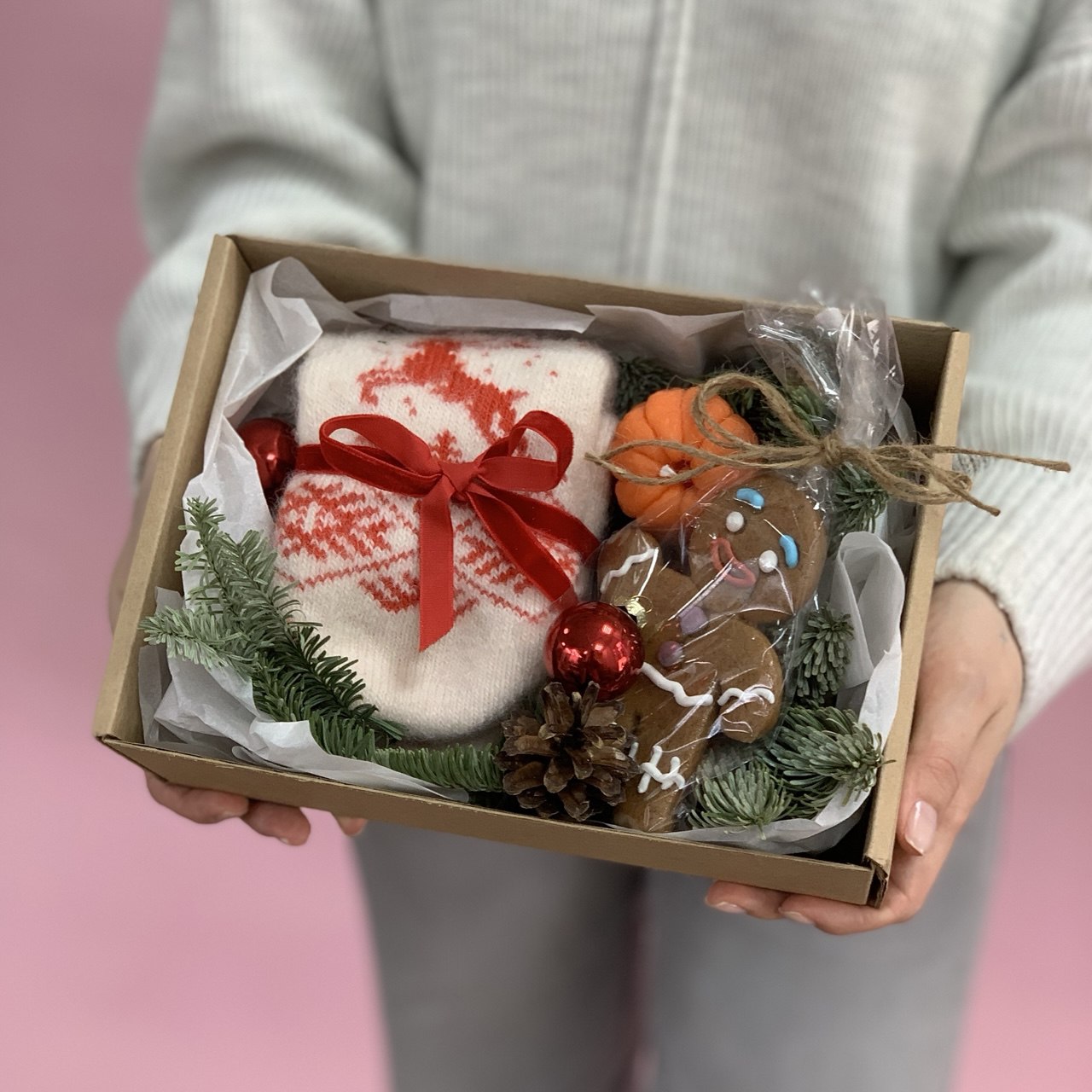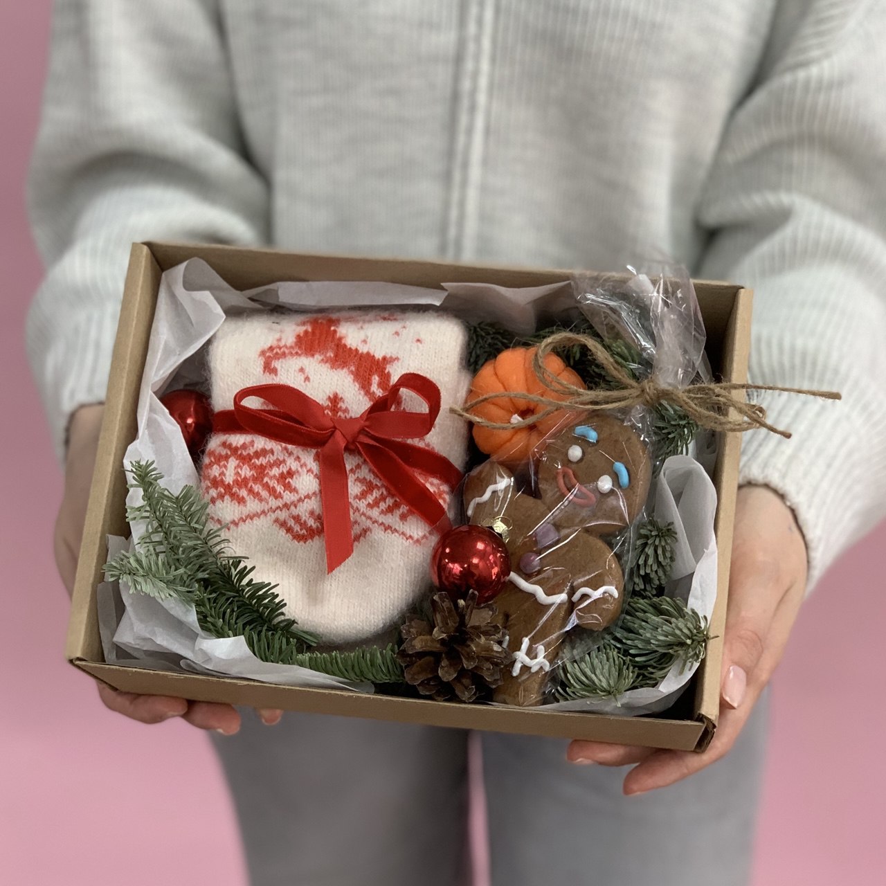 Новогодняя коробочка с варежками/носочками и имбирным пряником