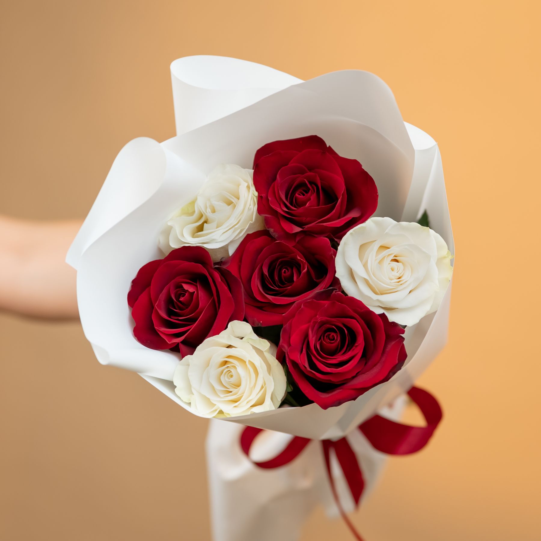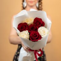 красные и белые розы 7 шт